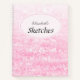 Das rosa und weiße Marmormuster bewegt sich von hell zu dunkel in einer schönen Gradation auf diesem hübschen Skizzenbuch. Ein hellrosa Oval ist ein besonderer Ort für ihren Namen, der in einem eleganten Drehbuch erscheint. Das Wort "Skizzen" erscheint auf mutigere Kalligraphie. Ein schöner Ort für schöne Zeichnungen.