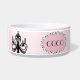 Leuchter auf einem rosa Hintergrund auf diesem personalisierten rosa schwarzen Chic-Hundehaustier rollen. Vervollkommnen Sie für Ihre weiblichen Schoßhunde.