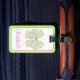Dieses personalisierte Gepäckanhänger ist mit hellen rosa und grünen Streifen geschmückt. Personalisieren Sie Ihre Auswahl an Namen und Sondertexten auf der Vorder- und Rückseite. Spaß für jeden Anlass. Ideal für Geschenktaschen.