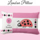Geschenk Idee, für ein Kinderzimmer, Kissen aus Lendenwirbel, Kissen. Rosa und weiß, mit Punkten, einem niedlichen Ladybug, Ladybird und einem Monogramm-Namen. Alphabet-Name.