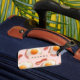 Personalisierte, rosafarbene Eier und Bacon-Muster Gepäckanhänger
