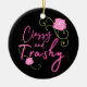 Sake Ornament für Frauen leben' das Landleben laut! Das Design enthält "Classy & Trashy" rosa Skripttext mit rosa Rosen auf schwarzem Hintergrund. Personalisieren Sie mit Namen oder anderen Nachrichten auf der Rückseite.