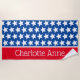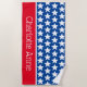 Dieses spaßige Strandtuch mit weißen Sternen auf blau mit einem hellen rot-weißen Streifen, die Sie mit Ihrem Namen oder speziellen Text personalisieren können.
