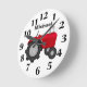 Personalisierte rote Traktorhalterung Runde Wanduhr