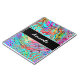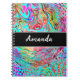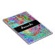 Fügen Sie diesem abstrakten Notebook der Digital Art einen Namen hinzu. Blauer, aquamariner, lila, schwarzer, rot-gelber Farbdruck.
