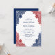 Personalisierte rustikale Hochzeit in Blau und Rot Einladung