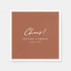 Mit diesen personalisierten Hochzeitsnapkins mit einem stilvollen "Cheers!"-Skript in knalligem Weiß stärken Sie Ihren rustikalen Hochzeitsempfang. Passen Sie sie mit Ihren Namen und Ihrem Hochzeitstag an, um eine wirklich einzigartige Touch zu erleben, die Ihre Gäste lieben werden. Der warme Terrakotta-Hintergrund ergänzt jedes rustikale Hochzeitsdekor und schafft eine gemütliche und einladende Atmosphäre. Diese aus hochwertigen Materialien gefertigten Servietten sind elegant und langlebig, sodass sie Ihren ganzen Tag über erhalten bleiben. Perfekt für: ・ Rustikale Hochzeiten ・ Hochzeiten im Stall ・ Hochzeiten im Freien ・ Hochzeiten im Garten ・ Alle anderen besondere Anlässe