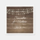 Lieblich passende Servietten für eine rustikale, landschaftliche Hochzeit. Einwegservietten, personalisieren Sie sie durch Hinzufügen von Braut- und Bräutigam-Namen und Datum. Die Lampen aus Holz werden gezwinkert.