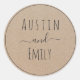 Karo diese niedlichen modernen Aufkleber für deine Hochzeit aus. Sie verfügen über einen rustikalen Papierhintergrund von Kraft, ein niedliches Drehbuch und anpassbare Namen für Braut und Bräutigam, um ihren eigenen Namen hinzuzufügen. Passen Sie den Text so an, wie Sie möchten, um Ihre Hochzeitsvibe zu erfüllen. Perfekt für alle Hochzeitsbedürfnisse Produkte wie danke Aufkleber, Umschlag Aufkleber...