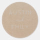 Karo diese niedlichen modernen Aufkleber für deine Hochzeit aus. Sie verfügen über einen rustikalen Papierhintergrund von Kraft, ein niedliches Drehbuch und anpassbare Namen für Braut und Bräutigam, um ihren eigenen Namen hinzuzufügen. Passen Sie den Text so an, wie Sie möchten, um Ihre Hochzeitsvibe zu erfüllen. Perfekt für alle Hochzeitsbedürfnisse Produkte wie danke Aufkleber, Umschlag Aufkleber...