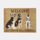 Pose mit drei niedliche Schäferhundwelpen für ein Bild auf diesem Spaß, der für Brüter, Hundehütten oder Hundeliebhaber perfekt ist. Der Text wird leicht geändert.