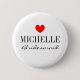 Personalisierte Brautmeisterschaften aus rotem Herzen knöpfen Buttone. Elegantes Hochzeitsdesign mit Herz und stilvoller Schriftzeichen. Machen Sie Ihr eigenes Abzeichen für schicke Braut, Brautmädchen, Trauzeugin, Ehrenmatron, Blume Mädchen, Brautmutter etc. Niedliche Liebe Hochzeitsfeier, Brautparty, Bachelorette etc. suchen.
