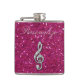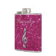 Personalisierte elegante bezaubernde girly angesagte Flasche, die Sie mit Ihrem eigenen Namen personifizieren können. Schön, Blendungstrendy Druckbildsilber und -diamanten, die musikalische Anmerkung der Juwelen über einen Glitter-Druckbildhintergrund des heißen Rosas des Chic funkelnd bling sind. Ein niedliches, nobles, modernes, stilvolles, hübsches Geschenk für sie oder irgendein Musikliebhaber.