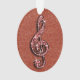 Elegante, bezaubernde personalisierte Acrylverzierung. Schön, Blendungstrendy Druckbild rot und silberne Diamanten, die musikalische Anmerkung der Juwelen über einen roten funkelnd Glitter-Druckbildhintergrund des Chic bling sind. Ein niedliches, nobles, modernes, stilvolles, hübsches Geschenk für sie oder irgendein Musikliebhaber.