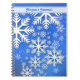 Die Schneeflocken sehen vor dem blauen Hintergrund so hübsch aus, mit funkelnden Sternen. Ein schönes Winterdesignbuch, was werden Sie in Ihrem Buch schreiben?