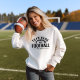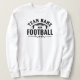 Custom Football Sweatshirt für Mamas - in White Design gezeigt, verfügt über ein stilvolles Fußball-Logo mit sportlichem, individuellem Text. Personalisieren Sie Ihre Spiele mit dem Namen Ihres Fußballteams und der Jersey-Nummer Ihres Spielers. Schwarzes Design und weiße Sweatshirt Farben können modifiziert werden.