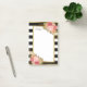 Elegant personalisiert Post it Notes mit schwarz-weiß gestreiften Design und rosa und goldfarbenen Blumen.
