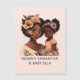 Schöne Grußkarte einer Schwarzen Mutter und Tochter mit lebhaften Blume in ihren Haaren, feiern Liebe, Familie und Erbe. Ein herzliches Design, das die Bindung zwischen Mutter und Kind würdigt. Ideal zum Muttertag, zum Geburtstag oder als bedeutendes Geschenk für Mütter, Töchter und Familien, die sich gemeinsam lieben.