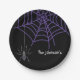 Set die perfekte, sprichwörtliche Atmosphäre in Ihrem Halloween-Party mit dieser schwarzen Papiertafel mit einem Imitat, das lila Spinnennetze sequenziert, und einem Imitat, das silberne Spinne hinterlässt. Personalisieren Sie es für eine einzigartige Touch!