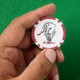 Chips für personalisierten Poker. Jeder Chip hat seinen personalisierten Text auf der Rückseite und eine Skeletthand mit 4 Asse!
