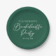 Dieser feste smaragdgrüne Papier-Teller für die Junggesellinnenparty zeigt klassische weiße Schrift für eine Braut, die die Natur liebt. Feiern Sie Ihre Freundin mit dieser tiefen Farbe in dieser schicken, minimalistischen Dekoration für die Junggesellinnenparty.
