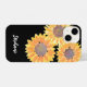 Dieses florale iPhone Gehäuse ist mit wasserfarbenen Sonnenblumen in Gelbtönen auf schwarzem Hintergrund dekoriert. Einfach anpassbar. Ändern Sie mithilfe des Entwurfstools die Textgröße, den Stil oder die Farbe. Wenn wir unsere Kunstwerke erstellen, werden Sie dieses exakte Bild von anderen Designern nicht finden. Original Wasserfarbe © Michele Davies.