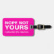 Personalisierte humorvolle Reise-Tasche Tag mit einem fuschia rosa Hintergrund, die Worte "nope not your", Ihren Namen und Kontaktdetails.