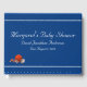 Das Thema "Boy Toys" zeigt das bezaubernde Bild der typischen Jungenspielzeuge - ein Rennwagen, Teddybär, Basketball und Baseball, die in einem hübschen Muster angeordnet sind, um den perfekten Hintergrund für den Namen und das Fälligkeitsdatum des Babys zu schaffen, der in einem leuchtend blauen Streifen in der Mitte des Designs angezeigt wird. Der gesamte Text ist individuell anpassbar, um sich mit den Duscheinladungen und dem Kinderzimmer-Thema "Junge Spielzeuge" abzustimmen.