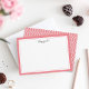 Unsere eleganten, personalisierten Schreibwaren-Flachkarten zeichnen sich durch eine lebendige Korallengrenze aus, in der Ihr Name oder Monogramm in dunkelkohlegrauen, modernen Schriftzeichen den höchsten Platz einnimmt. Die Rückseite zeigt ein modernes Gittermuster in passender Melone, pachy-pink und weiß.