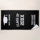Personalisierte Strandtücher für den Abschluss. Angepasstes Beachtowel mit High School Name und Graduiertenjahr; 2023 etc. Coole Graduiertengeschenk-Idee für Grads, Studierende, Senioren, etc. Vergnügungs-Sommerzubehör für Strand oder Pool. Schwarzweiß oder benutzerdefinierte Hintergrundfarbe. Tassel Hut und große Buchstaben Typografie Vorlage.