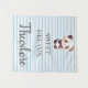 Schenke dem Raum deines Kleinen mit diesem personalisierten Panda-Teppich eine Atmosphäre der Ruhe und des Charmes. Dieses Portrait-Design zeigt einen niedlichen Panda vor einem modernen Hintergrund aus weichen blau-weißen Streifen.