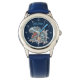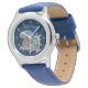 Kinderuhr aus Edelstahl mit blauem Lederarmband
