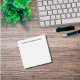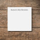 Dieses kleine quadratische 3x3 klebrige Notizblock kann mit einem Namen oder einer Nachricht personalisiert werden. Es ist für eine Erinnerung-Liste, kann aber für alle benutzerdefinierten Notizen verwendet werden. Es hat ein einfaches, sauberes Design in schwarz-weiß, aber Sie können die Farbe des klebrigen Notenpapiers ändern, wenn Sie möchten.