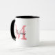 Personalisierte Tasse mit elegantem Namensmonogrammbuchstaben. Vintages mit Monogramm Wecker coffeemug mit stilvollen Skriptbuchstaben. Niedlicher Geburtstag oder Gastgeschenkgeschenkidee für Männer und Frauen. Stilvolle Schale 11oz mit eleganten korallenroten rosa und schwarzen Farben. Auch verfügbar als große übergroße ExtraTasse und groß gehen Reise-Tasse. Doppeltes versah Entwurfs-Trinkbehälter für Büro oder Zuhause mit Seiten.