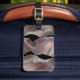 Dieses Gepäckanhänger ist mit braunem Age versehen, das auf schwarzem Hintergrund mit silber geglitzerten Kanten besticht. In den eleganten, geschliffenen Scheiben wirbeln verschiedene Tüpfeltöne, Braun, Lila und Gold. Silberne Glitzern unterstreichen die natürlichen Linien des Marmors wie Druck. Das doppelseitige Tag hat einen schwarzen schwarzen Rücken und kann mit Ihrem Namen, Telefonnummer, Adresse und anderen Informationen angepasst werden.