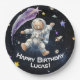 Mit diesen personalisierten Tellern aus Papier mit einem zauberhaften Teddybär-Astronauten, der zwischen Sternen und Planeten schwebt, machen Sie Ihre Weltraumfeier besonders. Perfekt für Geburtstage oder kosmische Veranstaltungen, jeder Teller kann mit einem Namen oder einer Nachricht, um eine einzigartige Touch Ihrer Party-Dekoration. Freuen Sie sich auf dieses charmante Design, das den Zauber der Weltraumforschung direkt auf den Tisch bringt!