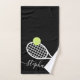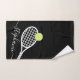 Personalisiertes Tennishandtuch mit einer einfachen Tennisschlägergrafik, individuelle Name oder Text und modernes hübsches Drehbuch Schriftart Monogramm in Schwarz und Weiß. Ein ideales Geschenk für einen weiblichen oder mädchenhaften Tennisspieler mit feminininem und mädchenhaftem Aussehen mit modernem und minimalem Design.