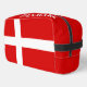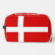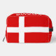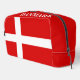 Rote dänische Flagge personalisierte Toilettentasche. Benutzerdefiniertes rotes Dopp-Kit-Design. Optional mit Name oder Monogramm personalisieren. Auch Farben können geändert werden.