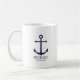 Nautical Personalisiert Trauzeugen Tasse mit marineblarem Anker und personalisiertem Trauzeuge-Namen mit marineblau klassischen Serif-Schriftart-Stil auf weißem Hintergrund. Auch perfekt für Trauzeuge, Brautvater und mehr.