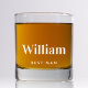 Einzigartiges personalisiertes Whisky-Glas für den Trauzeuge des Bräutigams mit seinem Namen in einem großen, fett weißen Schriftart und "Trauzeuge" in schlicht weißer Typografie.