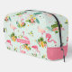 Verwandeln Sie Ihre tägliche Routine in eine tropische Flucht mit diesem lebendigen und personalisierten Flamingo-Doppkit. Entworfen mit einem pastellblauen Hintergrund und überfüllt mit exotischen Blumen, rosa Tupfen und wunderlichen Flamingos, ist diese Toilettentasche eine perfekte Mischung aus Funktion und Flair.