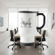 Personalisierter Name Typografie Monogramm Kaffee zu gehen Reisetog. Vintager mit Monogramm Coffeemug mit stilvollen Skriptbriefen. Niedliche Geschenkidee zum Geburtstag oder zur Gastgeschenk Hochzeit für Damen und Herren. Stilvolle Tasse in eleganten Schwarz-Weiß-Farben. Erhältlich als große extra große Jumbo-Tasse und für Reisen. Doppelseitiges Design.