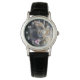 Uhr, Klassische Damenuhr mit schwarzen Lederarmband