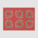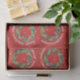 Dieses personalisierte Design besticht durch ein traditionelles Kranz-Set auf einem hellen, weihnachtroten Hintergrund mit winzigen Goldherzen und der Stimmung "Merriest Christmas", die individuell und beliebig gestaltet werden kann.