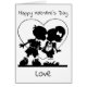Personalisiert Glückliche Valentinstag-Karte. Schwarz-Weiß-Karte mit Junge und Mädchen, die sich im Herzen küssen.