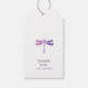 Ein modernes Dankeschön-Tag mit einem lila Wasserfarben-Libellen mit grauem und lila Text. Personalisieren Sie Ihre persönlichen Daten mit dem Namen Ihres Kindes.