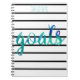 Personalisierte Watercolor-Ziel-Trendy schwarzes Streifen-Notizbuch. Behalten Sie Ihre Ziele mit diesem modernen und trendy personalisierten Notizbuch im Auge. Aquarell Brushstrokes von Blauem und von Grünem auf einem Spaßschwarzweiss-Streifenhintergrund. Personifizieren Sie mit Ihrem Namen an der Spitze in einem hellgrünen. Stilvolle und moderne organisatorische Zeitschrift.