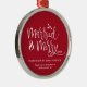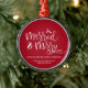 Stellen Sie sich vor, jedem Ihrer Gäste etwas zu geben, um sich an Ihre Weihnachtsfeier zu erinnern. Gib ihnen dieses personalisierte Ornament mit der eleganten und stilvollen Typografie für "Verheiratet & Merry" mit dem Jahr und "From the New Mr. and Mrs..". Ersetzen Sie den besonderen Gruß, um jedem Gast zu danken, anpassen Sie ihn nach Bedarf.