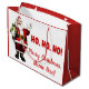 Weihnachtsgeschenke mit dem fröhlichen Weihnachtsmann auf einem festlichen rot-weißen Hintergrund. Diese Weihnachtsgeschenktüte ist leicht mit dem Namen des Empfängers personalisiert. Sie können auch die Hintergrundfarbe auf dieser niedlichen Weihnachtsgeschenktüte ändern.