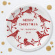 Ein hübscher Vogelkranz und Rosshuppen für ein wenig skandinavischen minimalistischen Stil. Rot auf weißem Hintergrund. Ändern Sie die Nachricht, den Familiennamen und das Datum, um eine persönliche Note zu erhalten. Ideal für einen Weihnachtsaufenthalt, ein Party oder eine Veranstaltung.